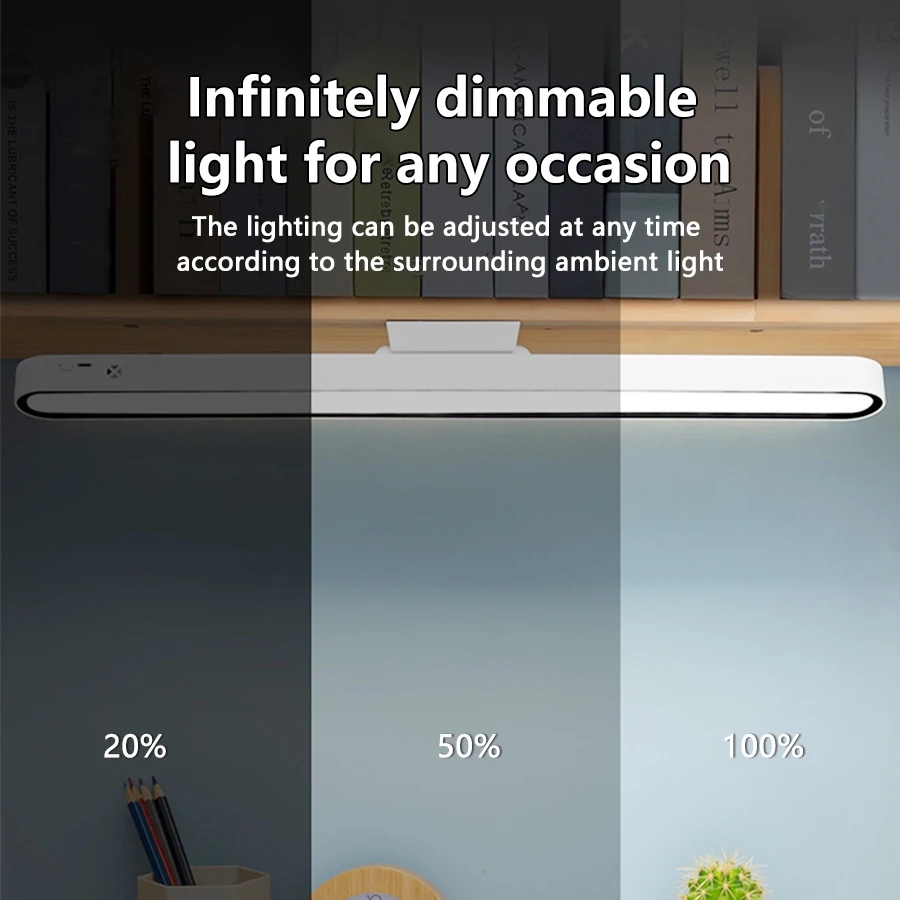Illuminate your space with this Magnetic Rechargeable Desk Lamp, designed for versatile use in bedrooms, offices, and study areas. Featuring stepless dimming, it allows you to fine-tune brightness levels to suit any mood or task—from focused reading to gentle nighttime ambiance. The magnetic base enables easy hanging or mounting, offering flexible placement options without cluttering your desk. With USB rechargeable functionality, it’s both eco-friendly and convenient, eliminating the need for constant battery replacements. The LED light delivers soft, flicker-free illumination that’s gentle on the eyes, ideal for long hours of learning or working. Compact and lightweight, it’s perfect for portable use or minimalist setups. Whether you’re studying late, winding down for bed, or adding a modern touch to your workspace, this lamp combines style, function, and comfort in one sleek design.